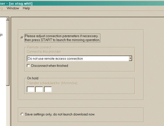 If you don't select anything, HTTrack will assume that you are already connected to the Internet and that you want to start the mirror action now